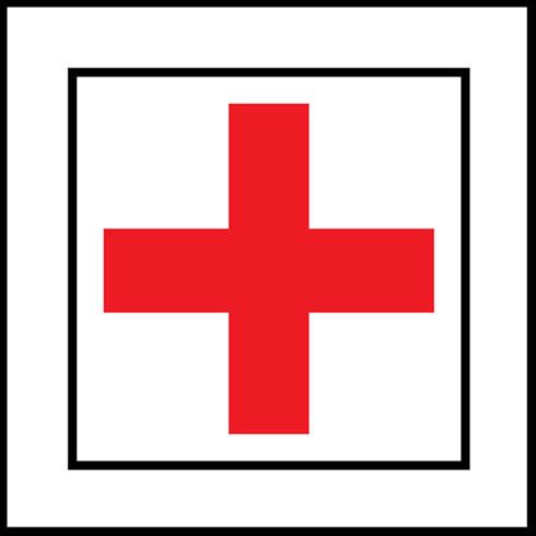 Markierung: rotes Kreuz auf weißem Quadrat
