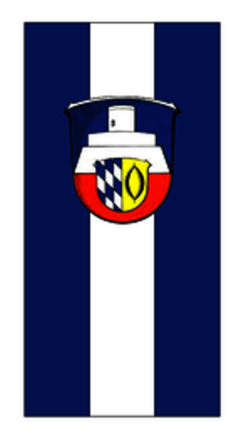 "Auf weißer Mittelbahn, begleitet von zwei blauen Randstreifen, in der oberen Hälfte aufgelegt das Gemeindewappen"